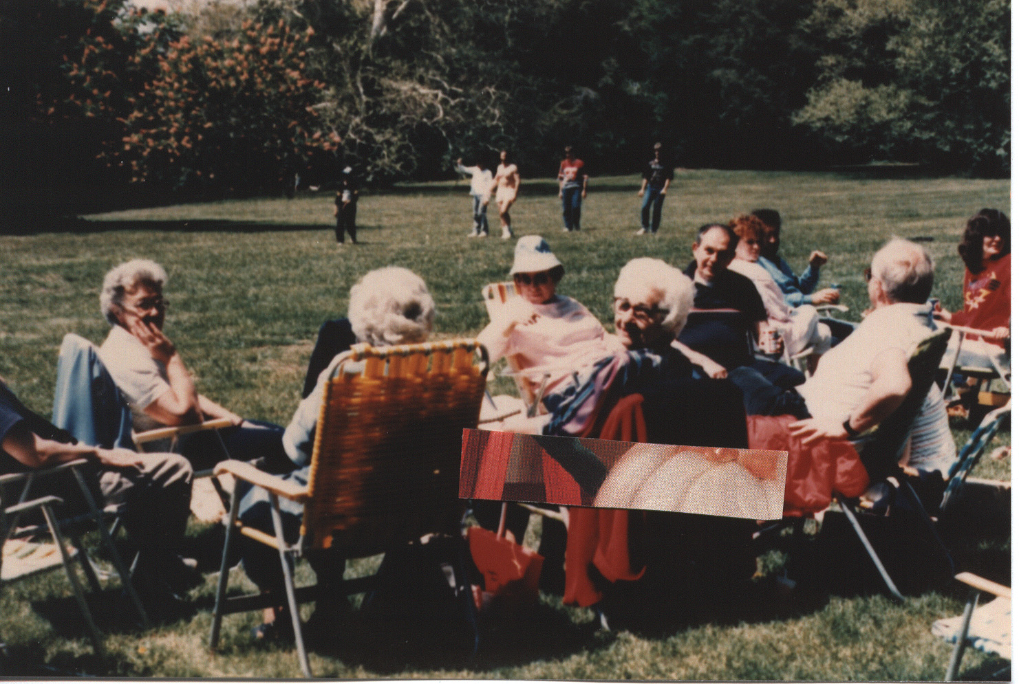 An annual event for the Bugliolis': The Family Mothers Day Picnic. This one was sometime around 1985. Visible from left: Enis, the back of Mary's head, Marie Maltese, Lena (turning), Frank Maltese, Debra [Ferrero], Michael [Tuccio], Ray's [Pacchiana] head, Carolyn [Tuccio]. The younger generation is playing in the background, as are Peter (just shorts) and Paul [Pacchiana]. |
