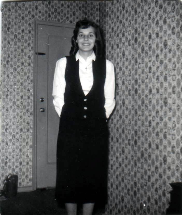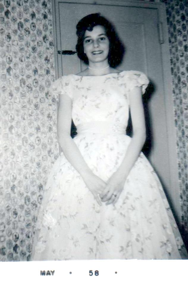 Carolyn dressed for her High school prom. [May 1958 as the photo stated].