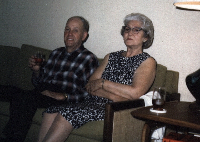 I think this is one of, if not the last photos with my grandmother Saunderson in it. I don't know where it was taken; but with them having drinks, it was a family get-together; and someone was taking the photo. My grandmother was not very happy. I don't think she ever wanted to leave her family in England. |