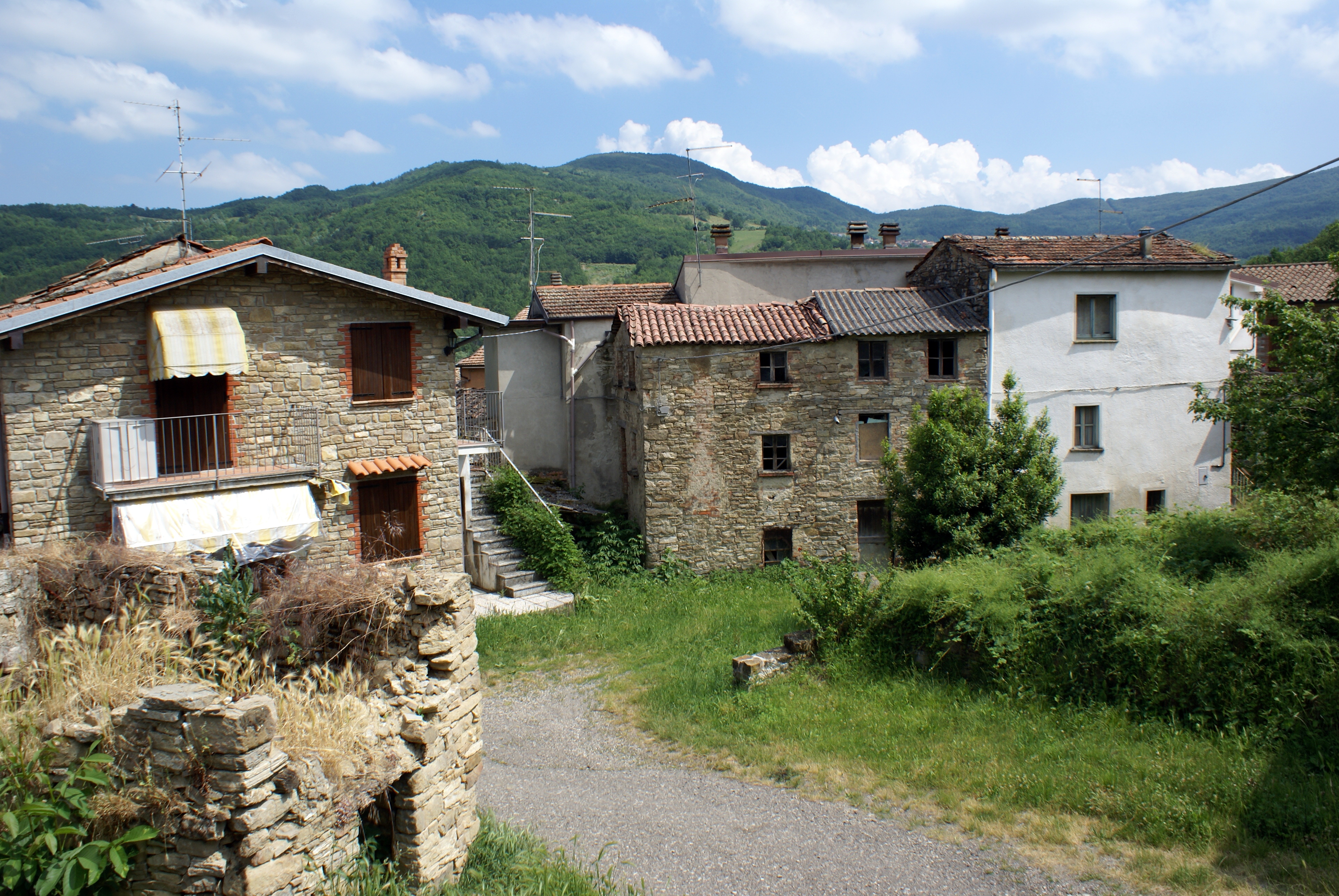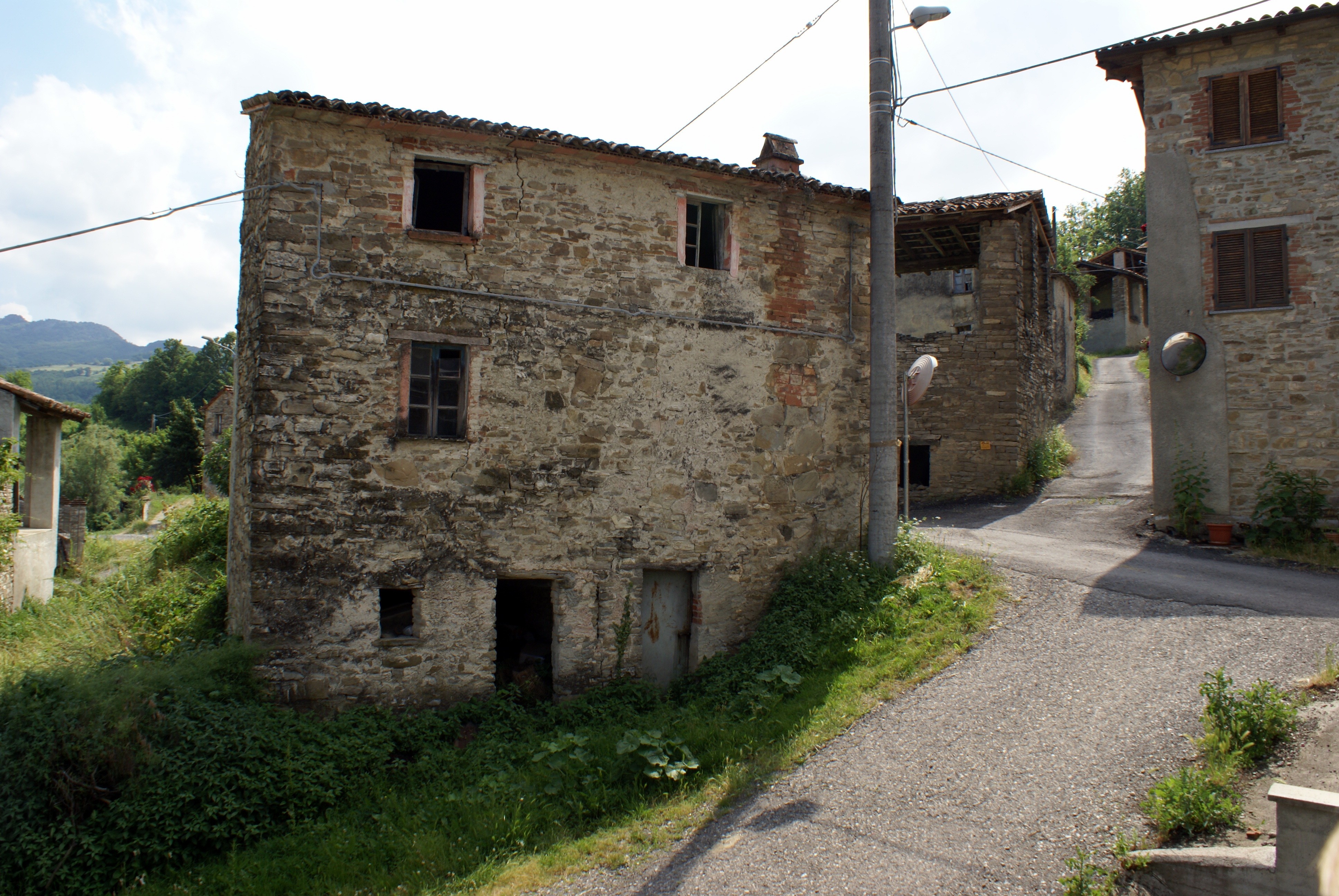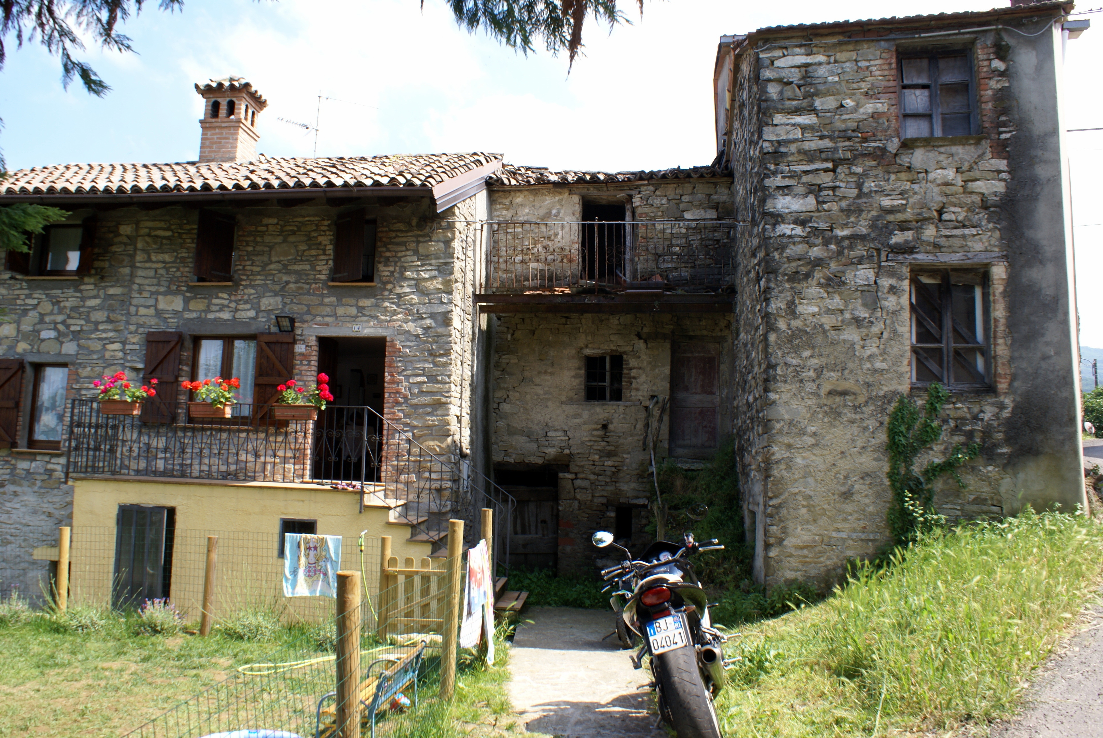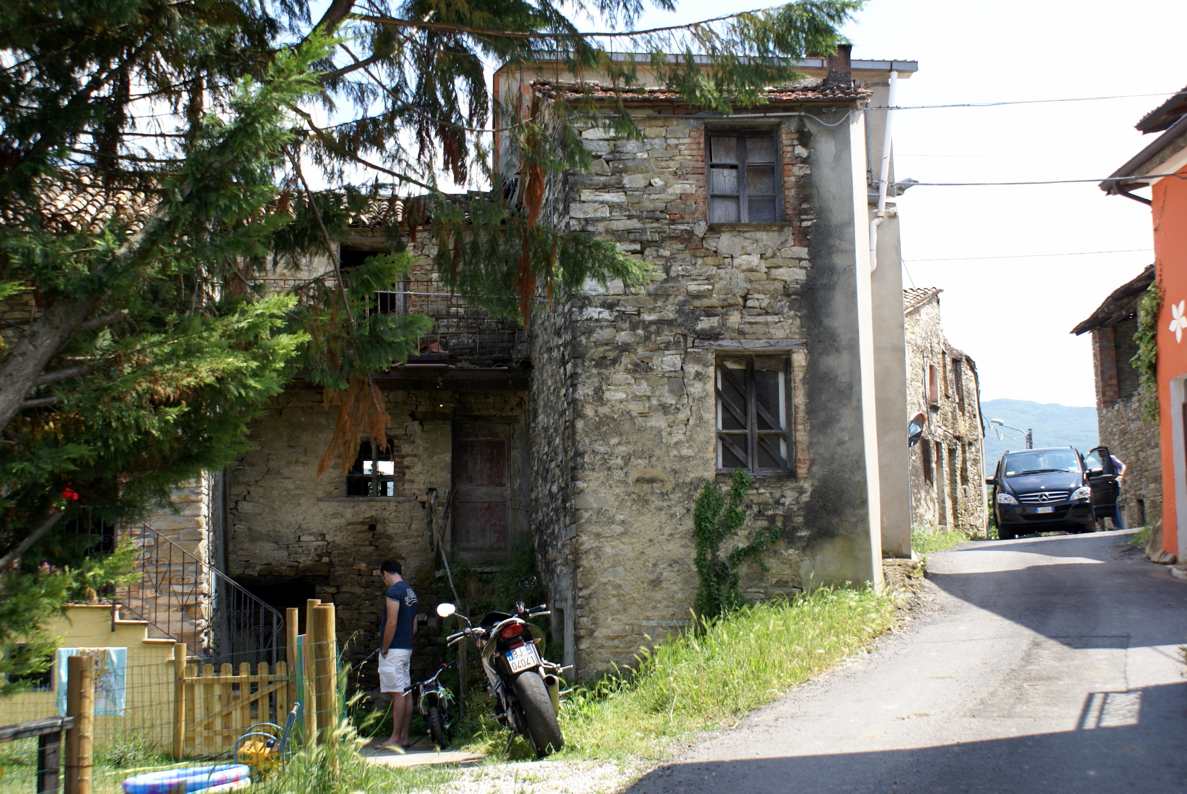 This is the entrance to Casa Fracchioni, as we approached. Casa Fracchioni was started by one family farming the land. Each male child built his own home and eventually the whole area was occupied by Fracchionis'. Hence the name... “House of Fracchioni”. For more photos of the village, click the links below. To return here use the back arrow on your browser. The next photos taken before we met Simona. We met Alberto, who in turn called Simona [a Fracchioni cousin—as it turns out!]. They then showed us around their home, and we met their children. This is their weekend home- they live and work in Milan. Simona wants to refurbish this home.