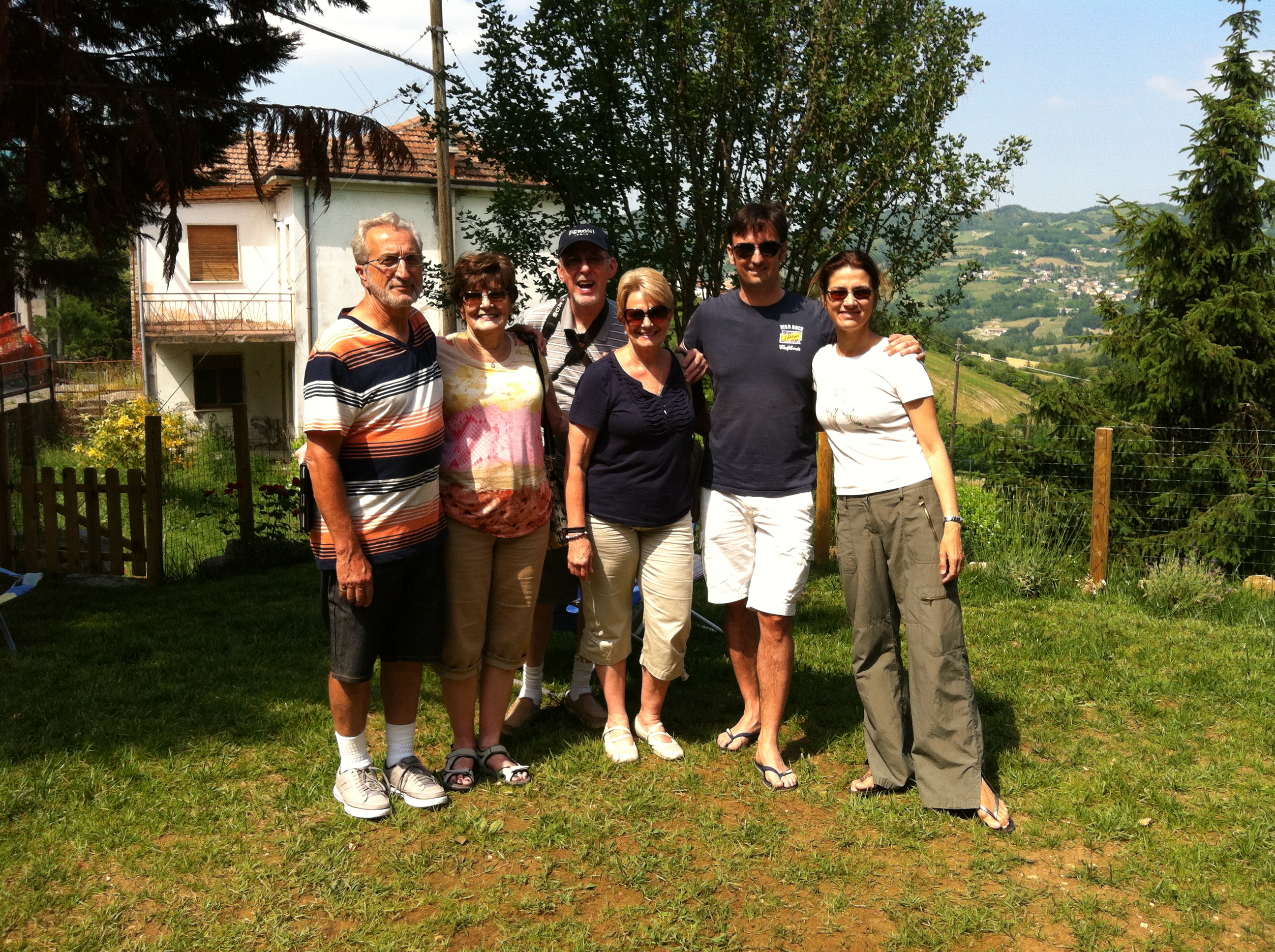 This photo was taken by our driver, Riccardo, on the yard in front of their home in Casa Fracchioni. With us is Simona Fracchioni and her husband Alberto Edossi. They have two children: a girl about nine, and a boy about three or four. Simona showed us inside their home, which was very tiny compared to what we are used to. I bumped my head going up to see the bedroom. The bathroom was located off an outside walkway past a bedroom with no door. The house was very well kept and the children were very quite. I imagine what a hard life one hundred years ago when according to Ferruccio and Romano there were seventeen living in the house. Simona was very sorry to see us go. We had established because of Linda and Carolyn's nonnie's maiden name that somehow she was a relative of theirs. She sent a phone number of “Uncle Ferruccio”, who lives in Canada. He was the closest to her since her father died. All the Fracchionis' to date are VERY friendly and hospitable.