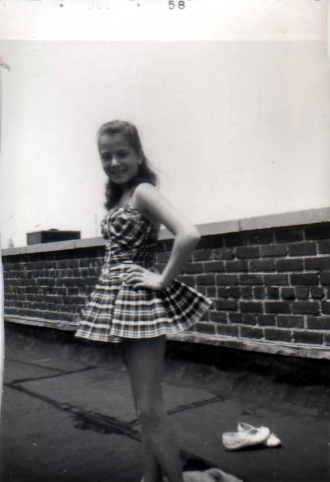 Linda on Tar Beach looking early teens. Most probably in Jeffrey Gardens, Bayside, Queens NY.