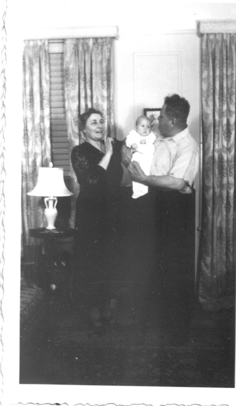 This is my Italian grandparents, Amelia and Felice, with their first grandchild, my brother, Henry Jr. It was taken in their living room in their house. My brother is only about 2 months old, so he wasn't saying much.