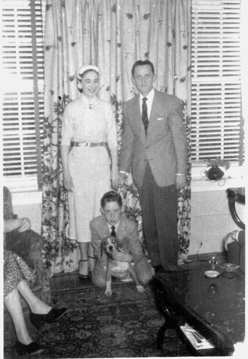 This was our first dog, Jiggs, named by my uncle Norman. I think he got it from a newspaper cartoon strip called "Jiggs and Maggie". Soon after this was taken, we moved to our first house on Bantam Place.