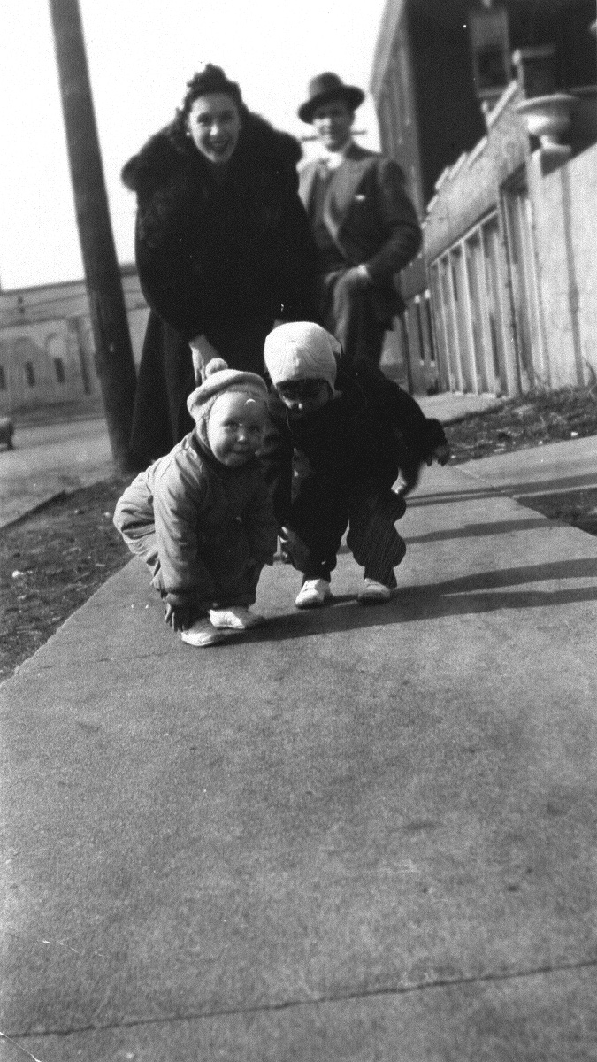 This photo of my mother and me (left) was taken in front of my grandparents house on Adams Street looking towards Morris Park Avenue. The other child is Victor Tomarchi and his father is behind my mother. They lived in the next house to my grandparents, and I knew Victor through high school. |