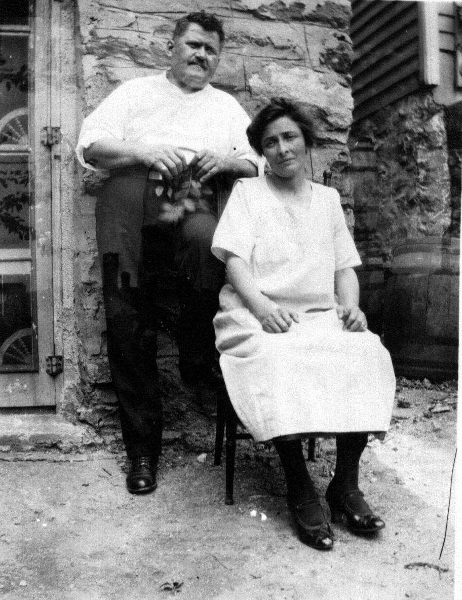 This photo of my Ferrero grandparents was taken in the backyard of their home on 1738 Adams Street in the Bronx. I'm guessing the time to be in the late 30's, early 40's. Behind them to the left in the photo was the basement kitchen door where they entertained when there was a larger crowd. Some of the photos of get-togethers is taken in that room The house was three stories. They rented out the middle floor. They lived on the top floor. To the left not seen in the photo was a long un-heated extension divided into three sections. The closest to the house was used to keep barrels of home-made wine. The middle stored apples, and the last coldest was to hang deer and other game that my father's uncle Tony brought home. Also in the basement was Uncle Tony's workshop and a room that had a large safe and Uncle Tony's gun collection. I spent most Sundays in the workshop when I was young after Sunday dinner. The furnace was in the workshop room, so it was always warm. It used to be a coal furnace, and my father told me how he would have to shovel coal into it. |