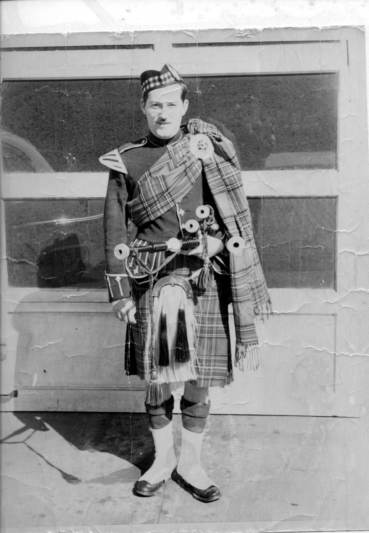This is my mother's brother, Robert Cecil Saunderson. My grandparents called him Cecil...; so did we. He belonged to a Pipe and Drum Corp marching band called Black Watch, and he played the bagpipes. One of the fond early memories of my childhood was watching them practice in Kings-bridge Armory in the Bronx. The place was huge, and to hear the wailing of the bagpipes and the thunder of the big bass drums was awesome. Uncle Norman, Cecil's brother, played the drums. I remember, as if it were yesterday, playing around with the Norman's drums with Cecil's daughters, Carol Ann and Deborah, my cousins, in my grandmothers apartment on Bogart Avenue, in the Bronx. The bagpipes, on the other hand were not fun. ...kind of like playing with an upright vacuum cleaner when all the attachments are falling off! |