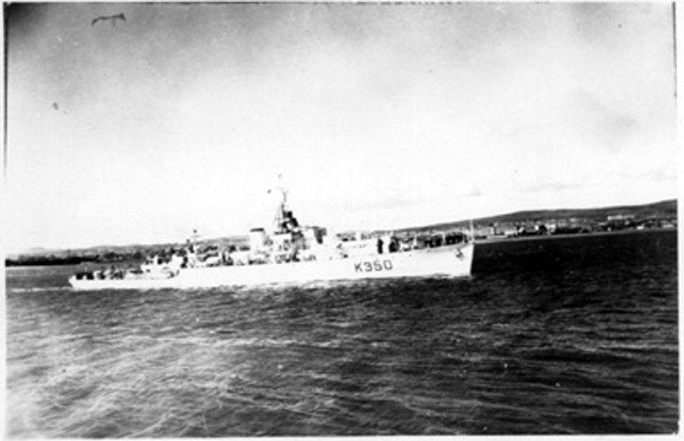 This is Norman Saunderson, My mother's youngest brother. This was taken during World War II. My Uncle Norman, not being a citizen of the U.S., it was harder to join the U.S. Navy. He joined the Canadian Navy instead, and served on a destroyer type ship called a "Corvette", in the North Atlantic. His ship was involved in protecting the shipping lanes against submarines in what was to become known as the "Murmansk Run". This was designated as a dangerous route near Russia, because of the U-boat activity. It was necessary mission for re-supplying the Allied Forces. Click here to see the K350 "Cape Breton" [The next link is an internet location] |