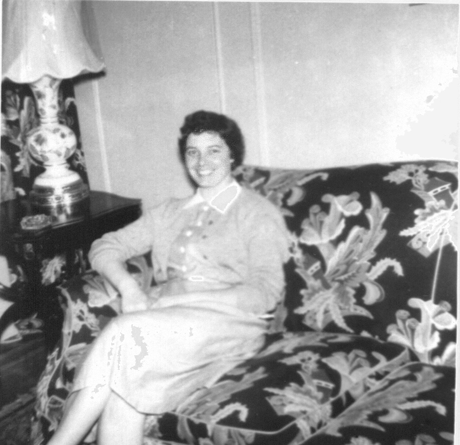 This is Norman's bride to be, Isobel Munro. This photo is my first memory of her, When we were first introduced to her, she was sitting on the sofa in the same spot. That was in the early '50s. Aunt Isobel was born January 17th, 1931 and died on January 26th, 2019 after just turning 88. She ALWAYS had that same smile! What a wonderful person. |
