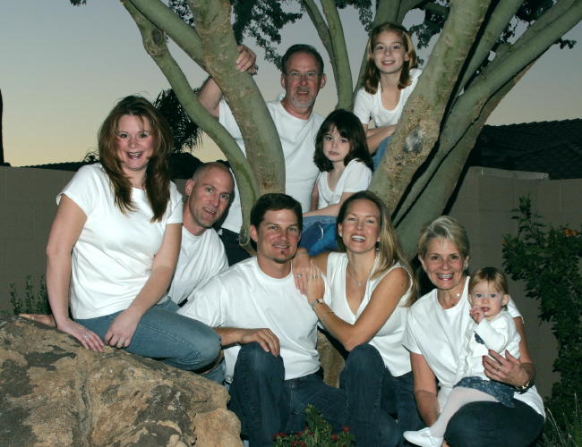 Another family picture - Taken in December 2005. Front row from left: Debra, John [Schmults], Richard Jr., Jennifer [JJ.], Linda holding Emma. In the tree: Me [Richard], Tori in the middle, Kaylee. Many thanks to the gorgeous Arizona weather, JJ & Rich’s backyard, & Dan Campbell, JJ.'s dad, for the photo session. |
